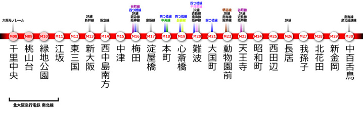 最北端の「千里中央」まで一本で通じているとても便利な路線です。