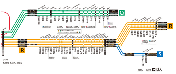 天王寺からは環状線、大和路線へ乗り換えが可能で、南は和歌山方面だけではなく関西空港線にも繋がり「関西国際空港」へのアクセスも楽々です。