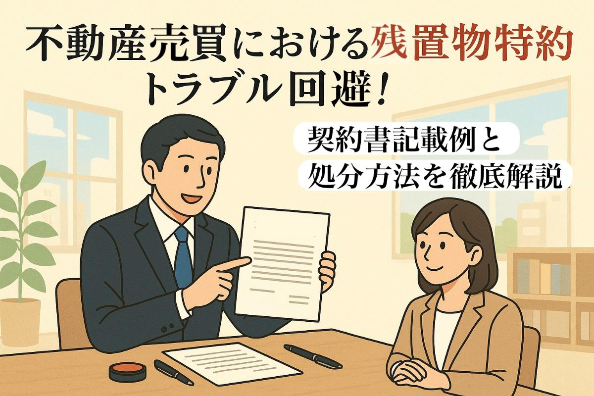 不動産売買における残置物特約とは、売買契約時に物件内に残る家具や家電、設備品などの取り扱いを明確に定める特約です。これにより、物件の引渡し時にどの物品が残され、どの物品が撤去されるかを事前に整理し、売主・買主双方のトラブルを防ぐ役割を果たします。特に中古物件では、エアコンや照明などの設備が残るケースが多く、特約の有無や内容によって費用負担や処分方法が大きく異なります。明確な特約を設けることで、後々の不要なトラブルや追加費用発生を未然に防ぐことができます。